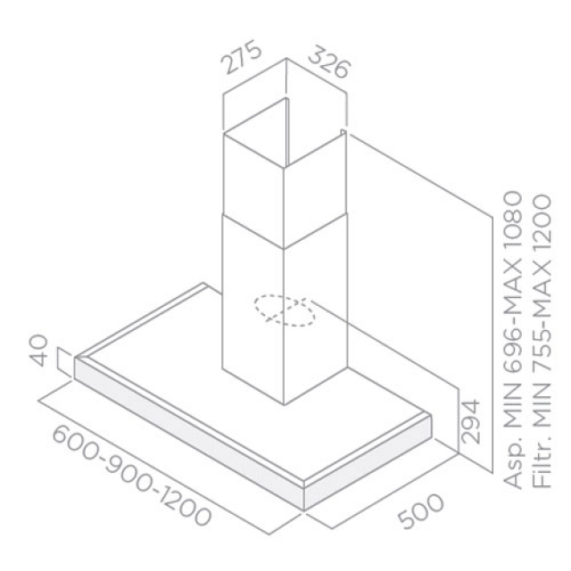 Technische Informationen der Elica Tendy I-X A120 Wand Esse PRF 002 7023
