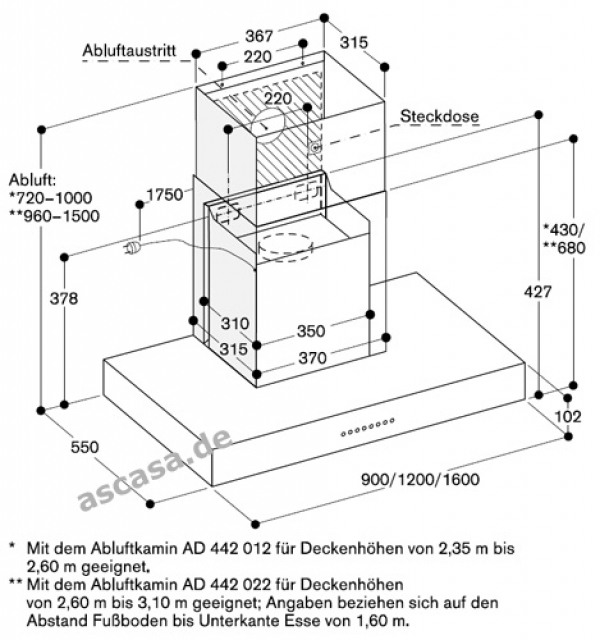 - Ein passender Gebläsebaustein für den Umluft- oder Abluftbetrieb muß seperat bestellt werden.