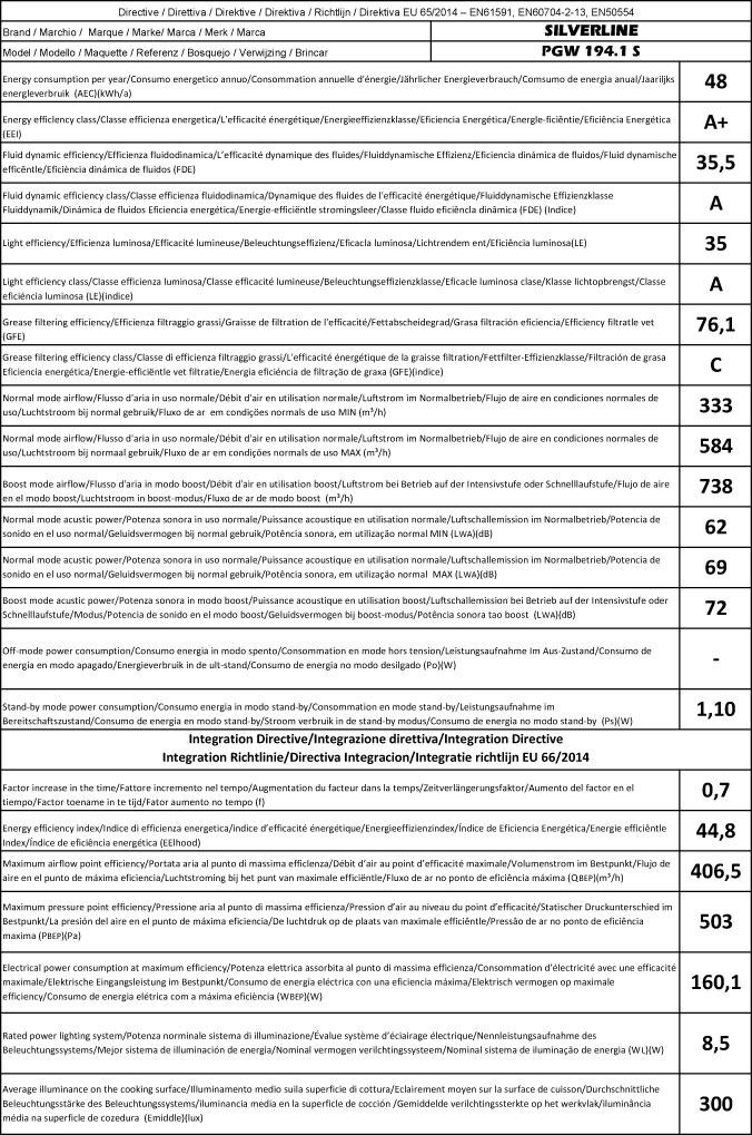 • Anschlusswert: max. 274 W  / Durchschnittlicher Energieverbrauch: max. 52 kWh/Jahr