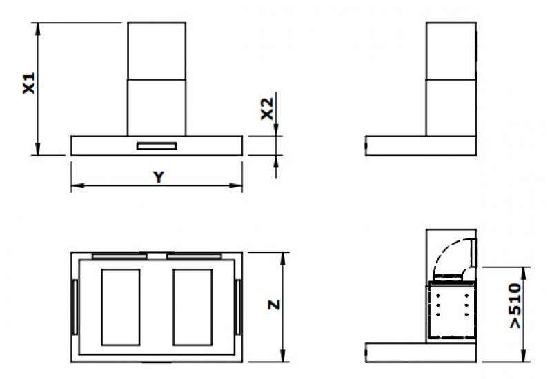 • H (X1) x B (Y) x T (Z): 68 – 83 x 150 x 55 cm