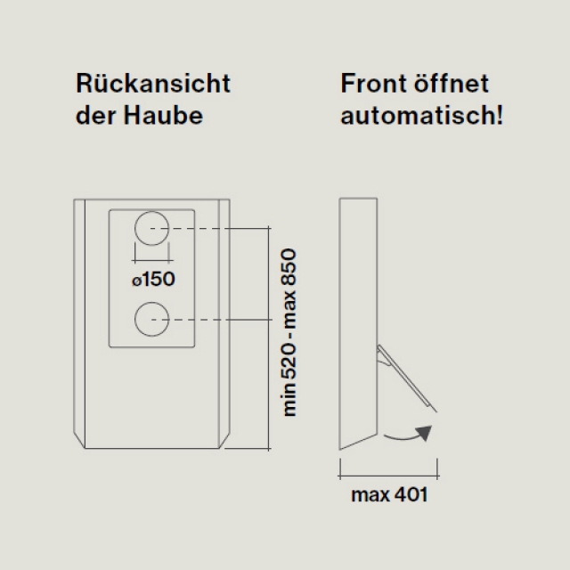 Nach drei Stunden Pause, beginnt die Haube erneut. Dieser Zyklus geht weiter, bis er deaktiviert wird. Besonders nützlich bei Abluft.