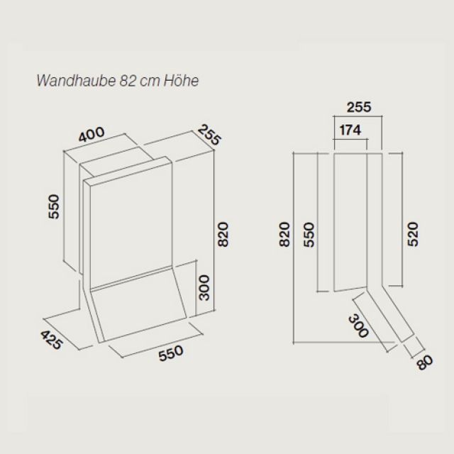- Installation: Wandhaube, 55 cm (b x h (cm): 55 x 820)