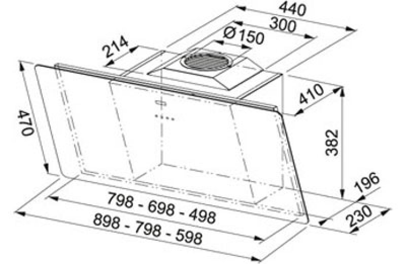 - Sicherheitsabstand zwischen Unterkante Haube und Kochfeld: 400 mm