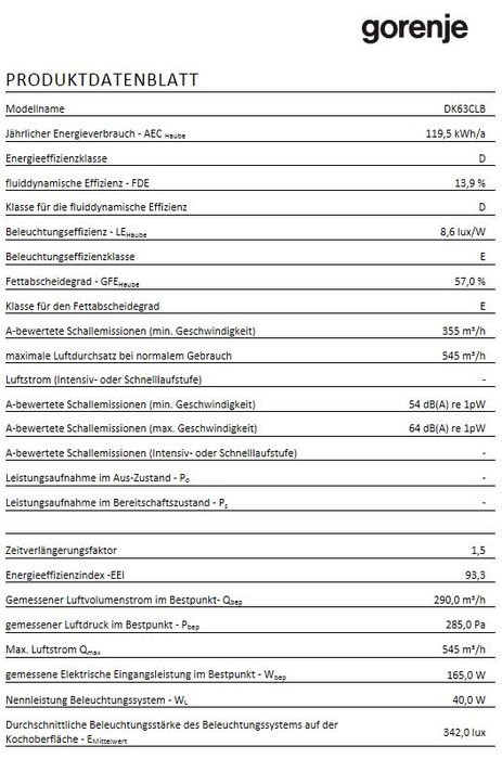 Gorenje DK 63 CLB, Kaminhaube, 60 cm, matt-schwarz, EEK:C