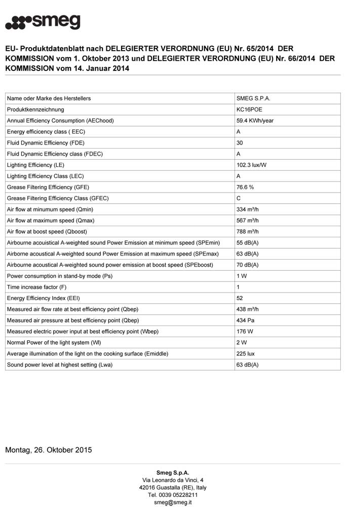 Technische Daten der Smeg Wand Esse KC 16 POE: