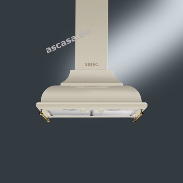 SMEG KC16PO E Dekor-Wand-Haube, Creme/Messing antik, 60 cm, Cortina-Design, 2 Aluminium-Fettfilter, Teleskopkamin creme, LED-Beleuchtung, Knebel-Bedienung, 3 Leistungsstufen + Intensiv