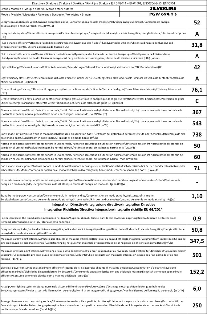- max. 274 W / Durchschnittlicher Energieverbrauch: max. 52 kWh/Jahr