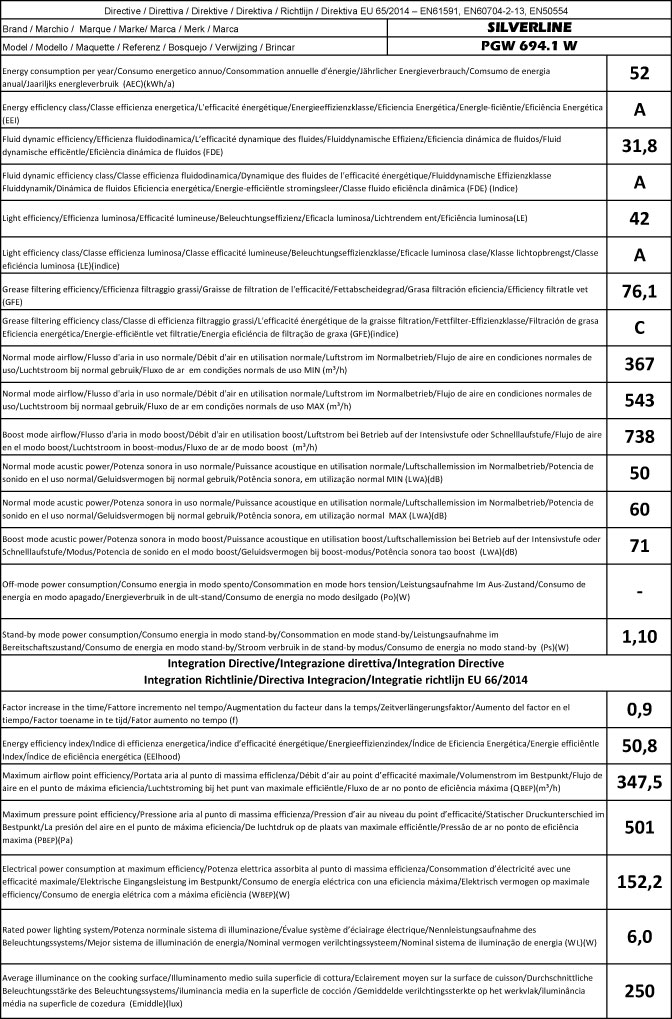 - max. 274 W / Durchschnittlicher Energieverbrauch: max. 52 kWh/Jahr