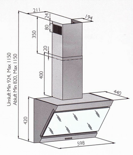 Silverline Sigma Edelstahl Glas schwarz 60 cm