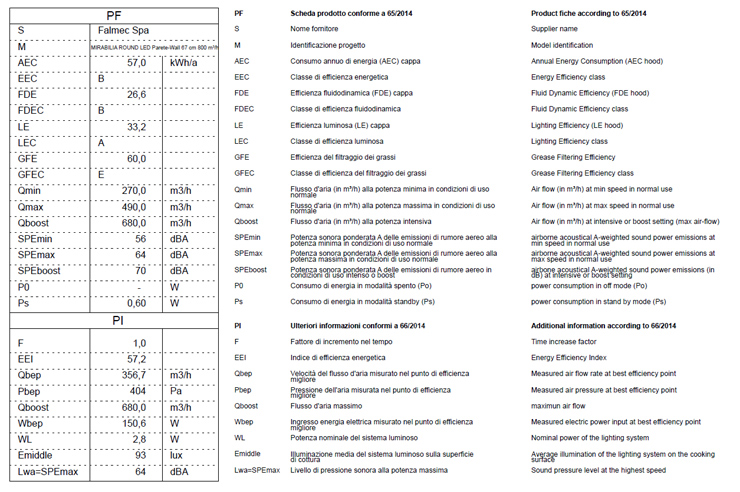 In der Mirabilia-Serie, werden Dunsthauben dekorativ und multifunktional mit den Eigenschaften des Lichts, ohne dabei die Effizienz einer Haube zu beeinträchtigen, hervorgehoben. Entwickelt, um Licht, Glas und Stahl miteinander zu verschmelzen. Zu dem bestehenden Angebot mit Glüh- und Halogenlampen wird die neue Mirabilia mit LED Beleuchtung hinzugefügt. Die LED-Leuchten werden sowohl als Kochfeld Beleuchtung, sowie für die Umfeldbeleuchtung verwendet. Der Vorteil dieser neuen Technologie ist eine fast vollständige Beseitigung des Stromverbrauchs für Lichtquellen. Darüber hinaus wird durch die weißen LEDs die “Reinheit des Glases”verbessert, was für einen angenehmen und modernen Effekt sorgt.
