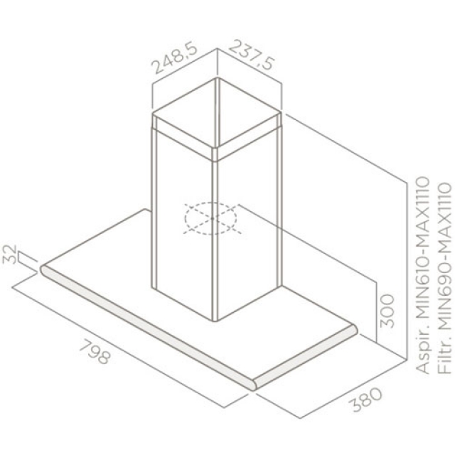 Technische Informationen der Elica Galaxy WHI-X A80 Wand Esse PRF 0009822A