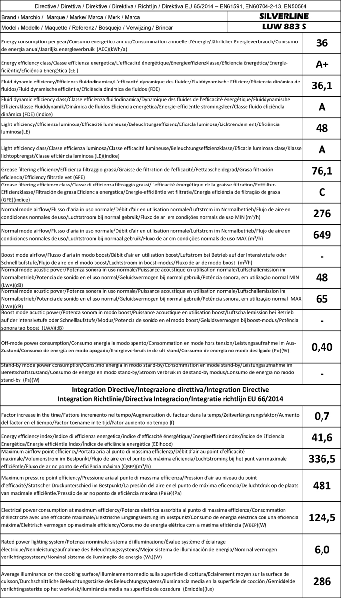 • Gemäß EU-Regulierung 65/2014 – EN61591, EN60704-2-13, EN50554