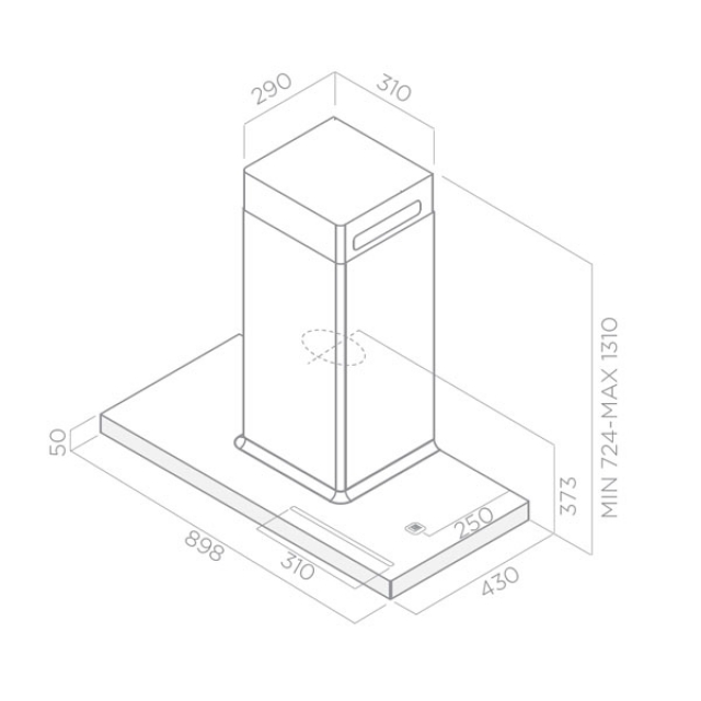 - Mindestabstand zum Kochfeld: E-Herd ≥ 50 cm, Gas ≥ 65 cm