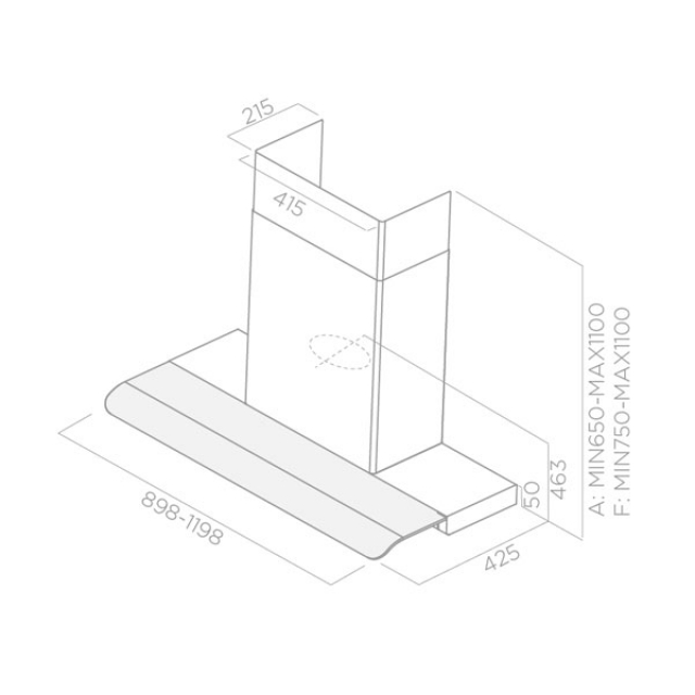 - Mindestabstand zum Kochfeld: E-Herd ≥ 50 cm, Gas ≥ 65 cm