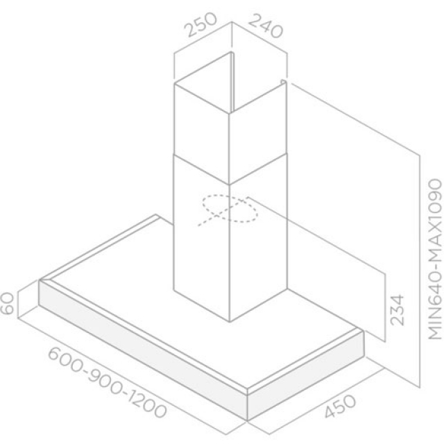 Technische Informationen der Elica Spot Plus I-X A90 Wand Esse PRF 0097 373