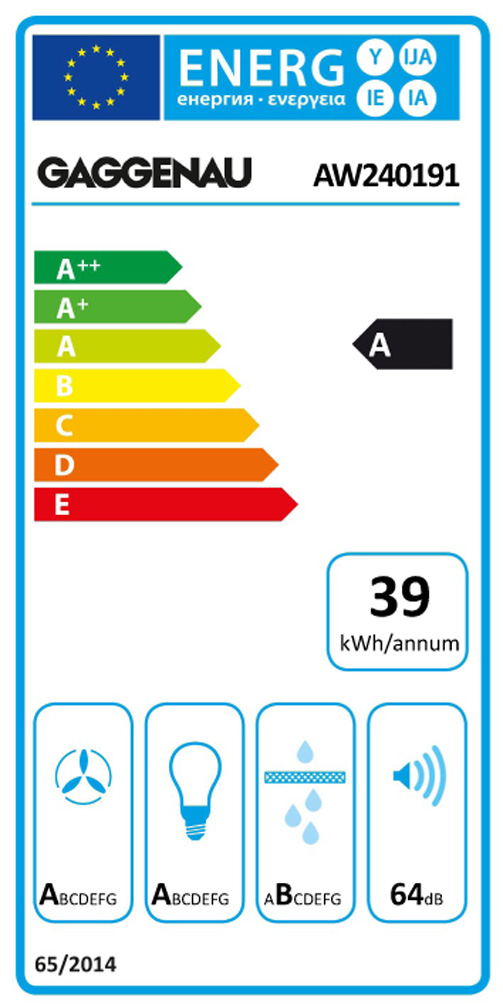 - Energieeffizienzklasse A auf einer Skala der Effizienzklassen von A++ bis E
