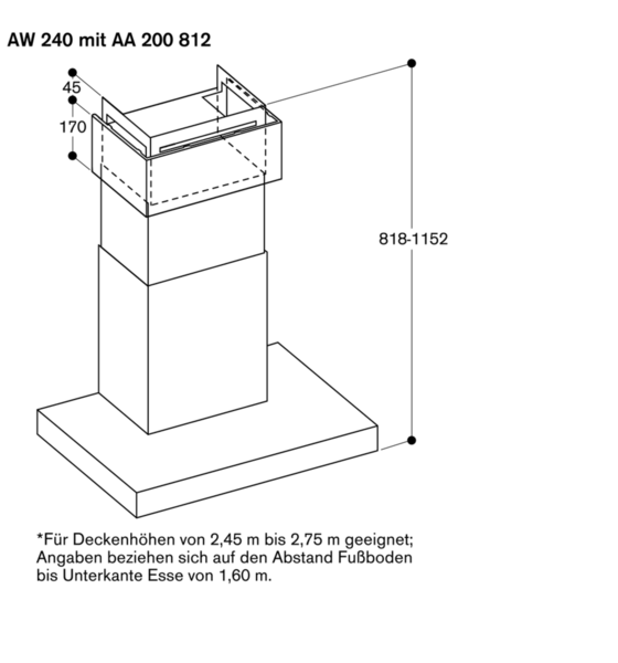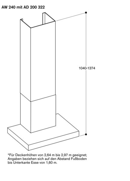 - Im Lieferumfang enthalten ist der zweiteilige Kamin mit den Abmessungen von 572 mm bis 874 mm. Individuelle Planungslösungen können mit dem Sonderzubehör Kaminverlängerung AD 200 322 oder durch Kürzen der Unterkante des Innenkamins realisiert werden