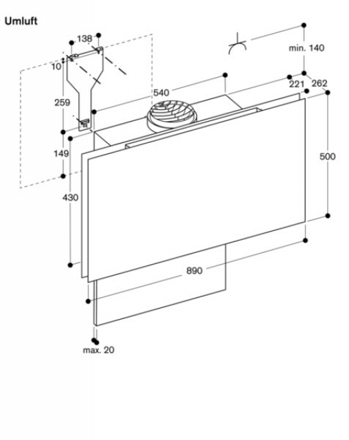 - Bei besonders intensivem Kochen lässt sich die Glasscheibe nach vorne aufziehen für einen vergrößerten Wrasenfangraum