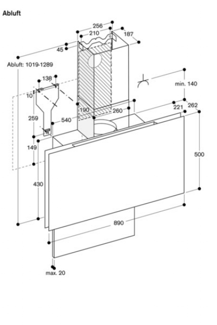 - Abstand über Gasgeräten mind. 60 cm (über 12 kW Gesamtleistung Gas mind. 70 cm).