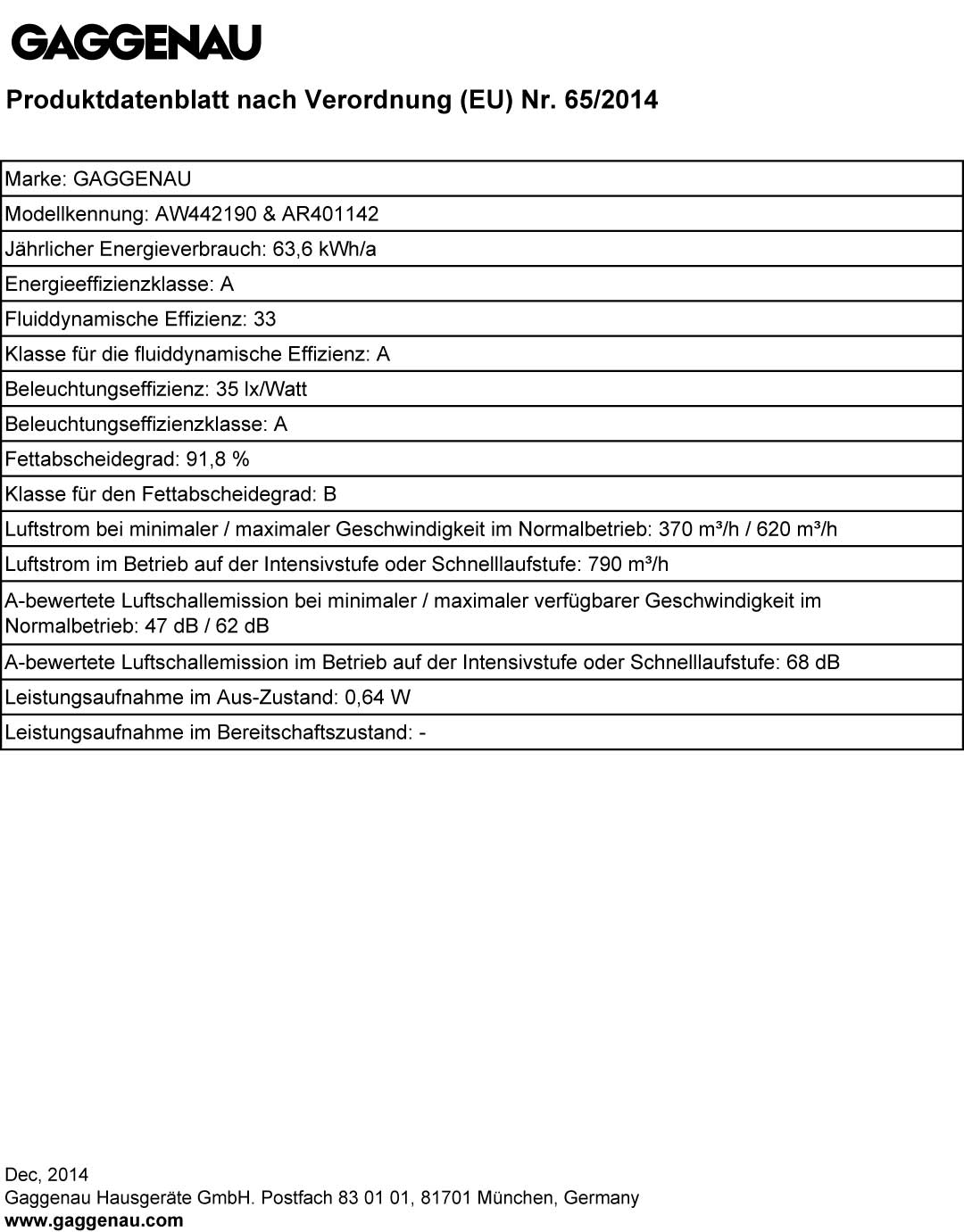 - Fettfilter-Effizienzklasse A/B/B