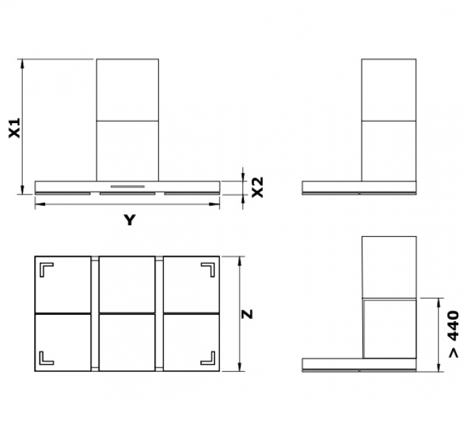 • H (X1) x B (Y) x T (Z): 74 – 83 x 90 x 50 cm