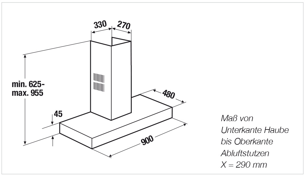 • Gerätemaße B x H x T ca. 900 x 625-955 x 480 mm