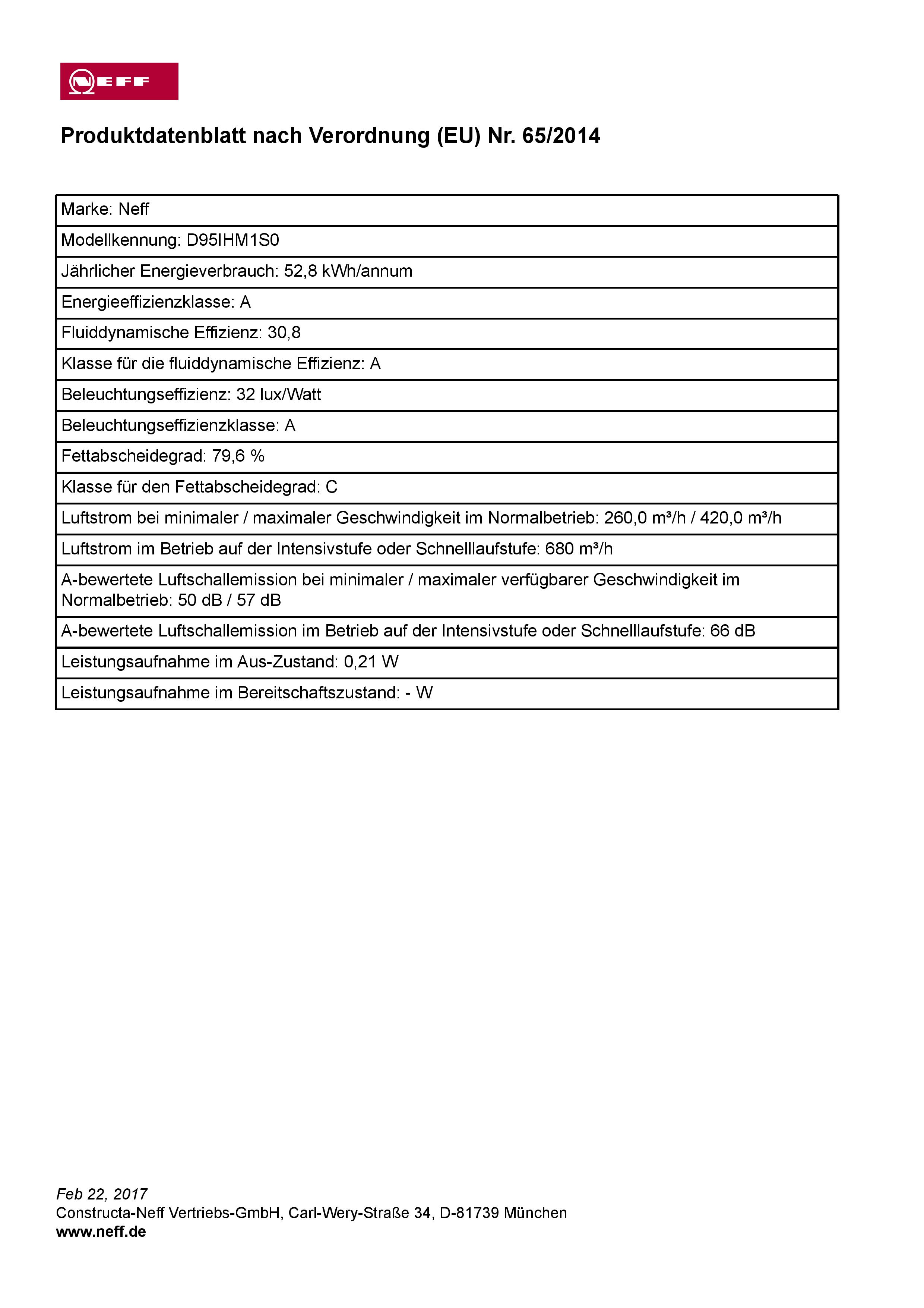 • Abluftleistung nach EN 61591: max Normalbetrieb 420m³/h, Intensivstufe: 680m³/h