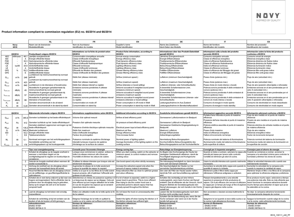 - Austausch gegen einen gleichwertigen oder neuen Artikel Novy Salsa Wandhaube 6500, Edelstahl Wandhaube (ggf. auch ein Nachfolgemodell)