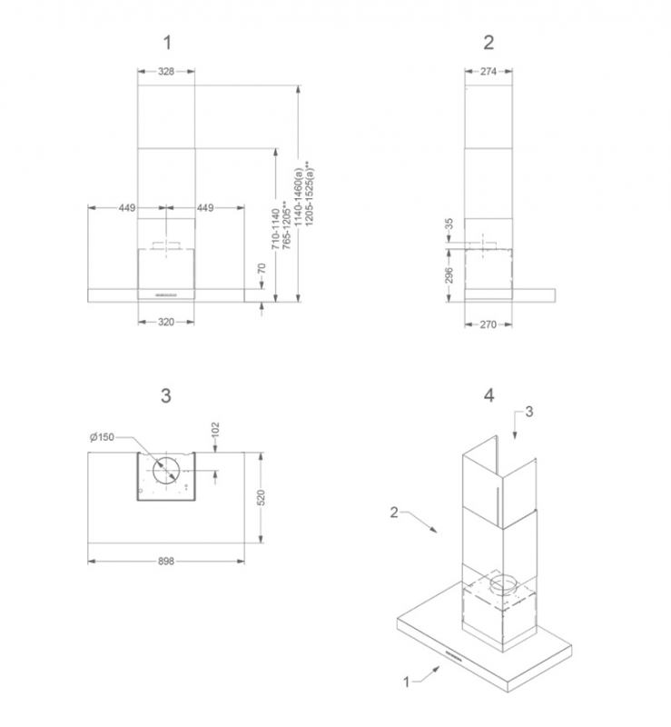 - Höhe (min. - max.) bei Abluft: 71- 114 cm
