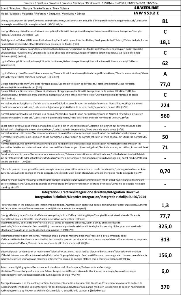 max. 216 W / Durchschnittlicher Energieverbrauch: max. 81 kWh/Jahr