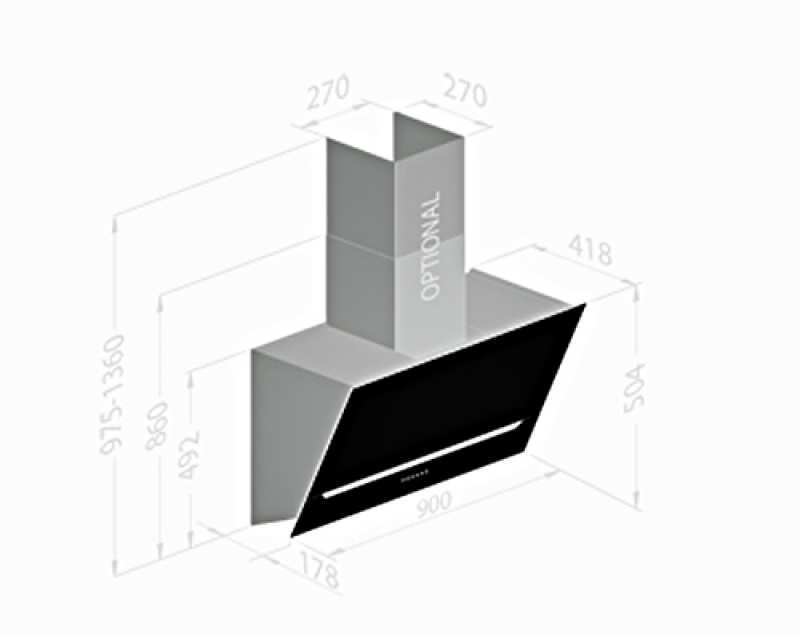 ascasa Leandro 90, 900mm, Wandhaube. Mit 5 Jahren Garantie!