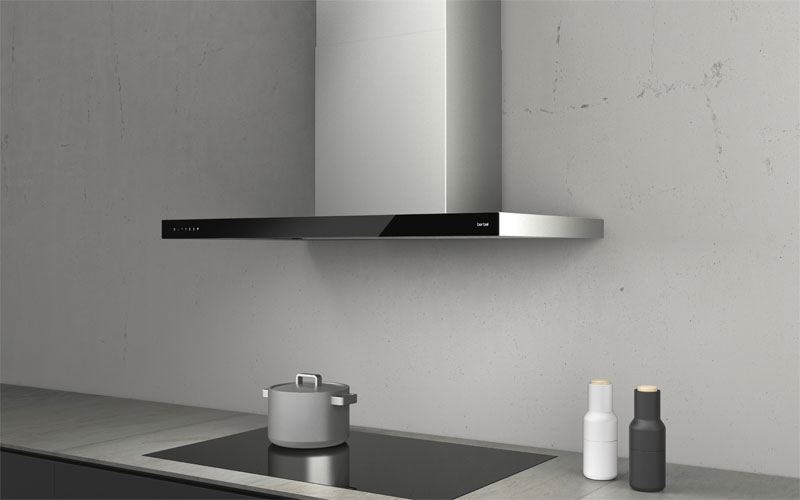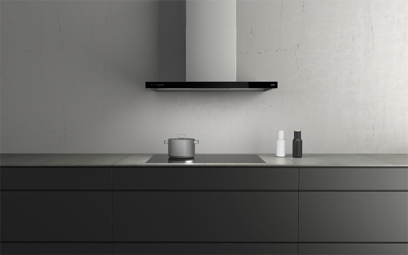 Die neue Wandhaube Glassline zeichnet sich aus durch ein besonders schlankes Korpusdesign. Der Einsatz der BlackFlow-Technologie sorgt für höchste Wrasenerfassungseffizienz.