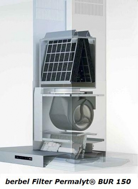 serienmäßigDie besondere berbel-EcoSwitch Technik ermöglicht jederzeit die flexible Wahl zwischen Um- und Abluftbetrieb einer berbel Dunstabzugshaube: Im Abluftbetrieb wird die Luft durch den automatisch öffnenden Mauerkasten nach draußen geführt. Im Umluftbetrieb bleibt der Mauerkasten geschlossen und die Luft wird per Umluft gereinigt. Ermöglicht wird dies durch ein intelligentes Gesamtsystem aus berbel Haube mit Aktivkohlefilter als Hybridversion sowie aktivem berbel Mauerkasten. Somit lässt sich flexibel je nach Koch- oder Wettersituation durch Berühren des Sensor-Touch-Bedienfeldes in den passenden Modus schalten.