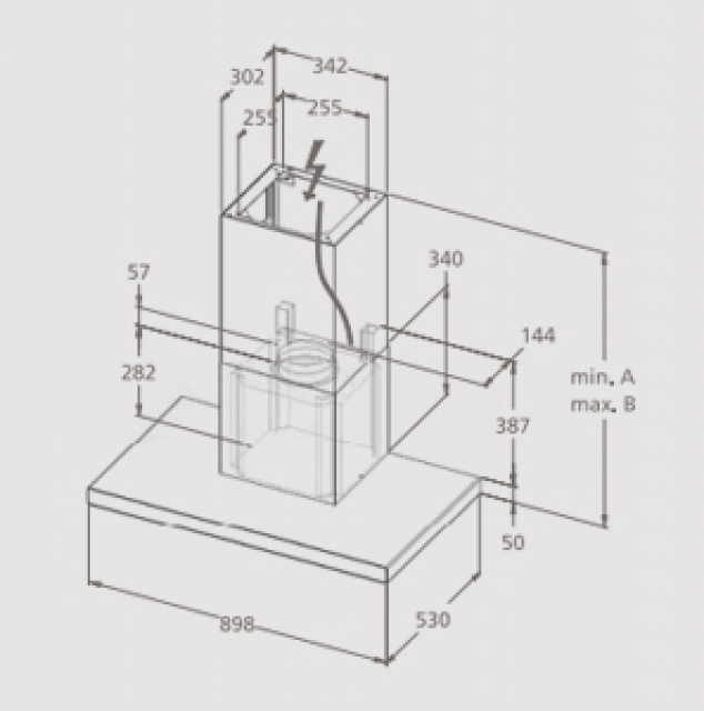 - Kochfeldabstand Elektro/Gas: 50/65 cm