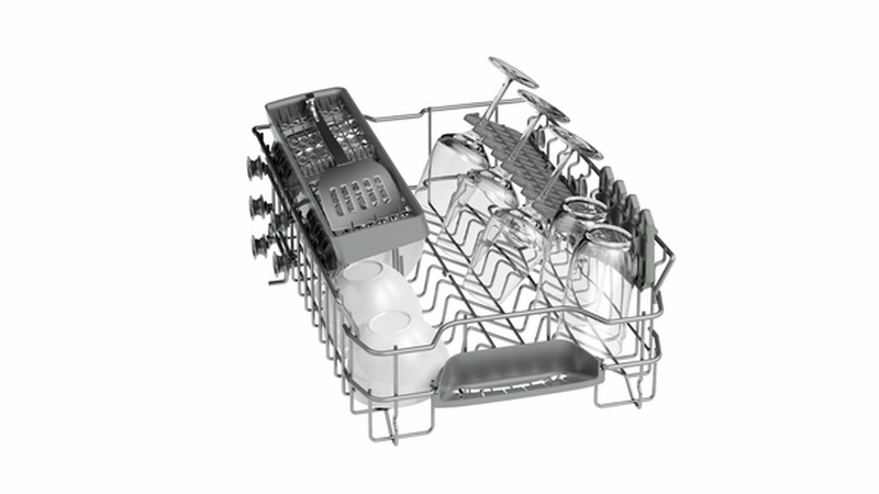 • Klappbare Tellerhaltereihen im Unterkorb (2x)