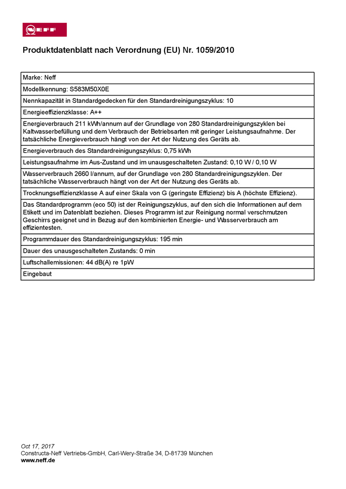 Neff GKV4508M / S583M50X0E, Geschirrspüler vollintegriert, 45 cm, EEK: A++, mit 5 Jahren Garantie!products_warranty_conditions