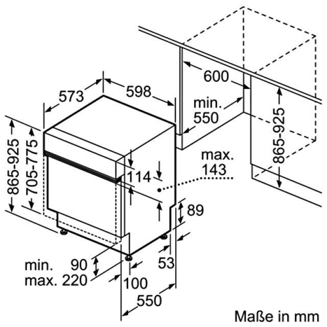 • Gerätemaße (H x B x T): 86,5 cm x 59,8 cm x 57,3 cm