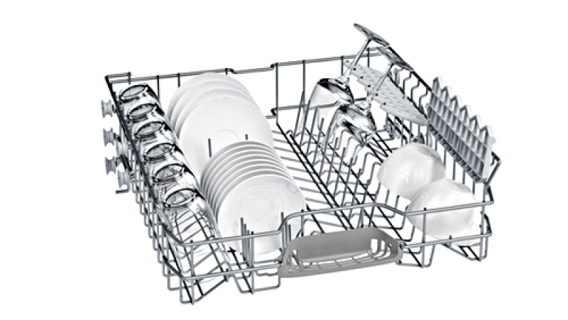 • Klappbare Tellerhaltereihen im Unterkorb (2x)