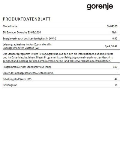 Gorenje GV 64160, Geschirrspüler, vollintegrierbar, EEK: A++