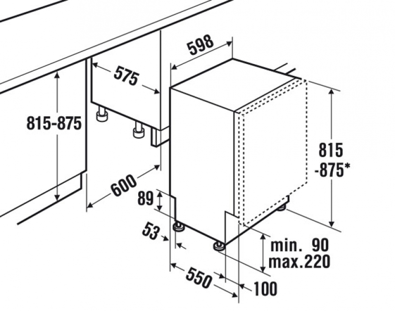 • Nischenmaße (mm/BxHxT): 600 x 815-875 x 575