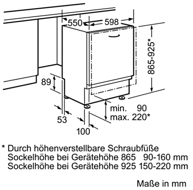 • Gerätemaße (H x B x T): 86,5 cm x 59,8 cm x 55,0 cm