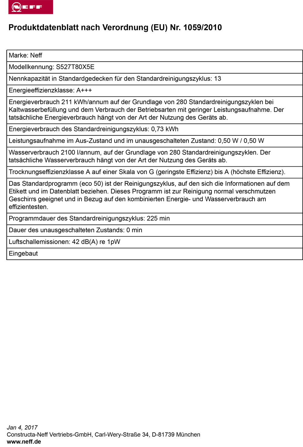 Neff GX 7805 T / S527T80X5E, Geschirrspüler vollintegrierbar, 60 cm, EEK: A+++, mit 5 Jahren Garantie!products_warranty_conditions