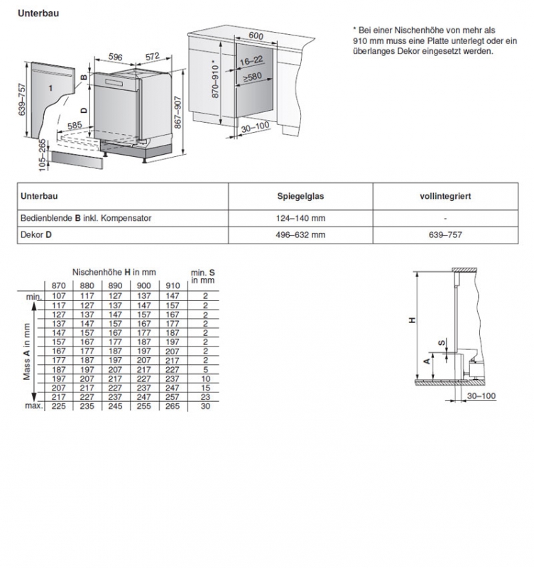 Tiefe Gerät einschließlich Wandabstand: 580 mm