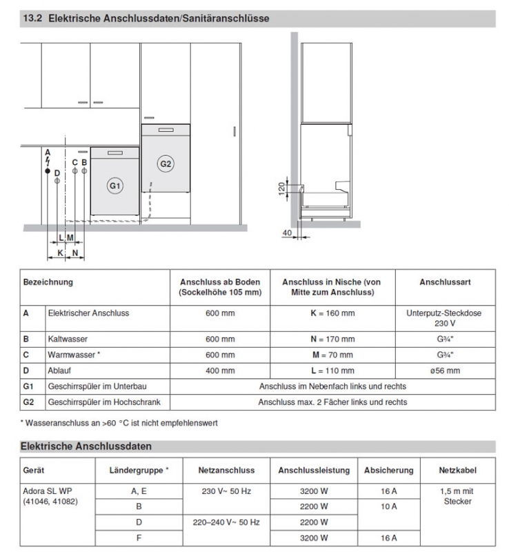 Tiefe Gerät einschließlich Wandabstand: 580 mm