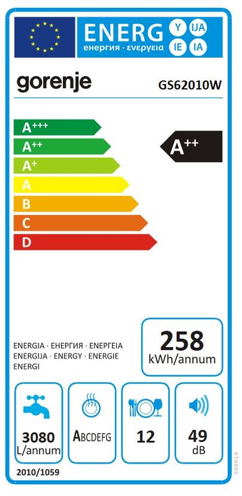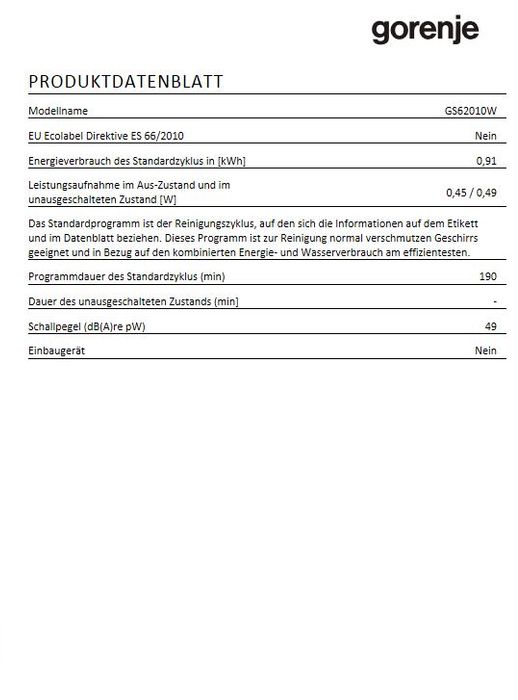 Gorenje GS 62010 W, Geschirrspüler freistehend, EEK: A++