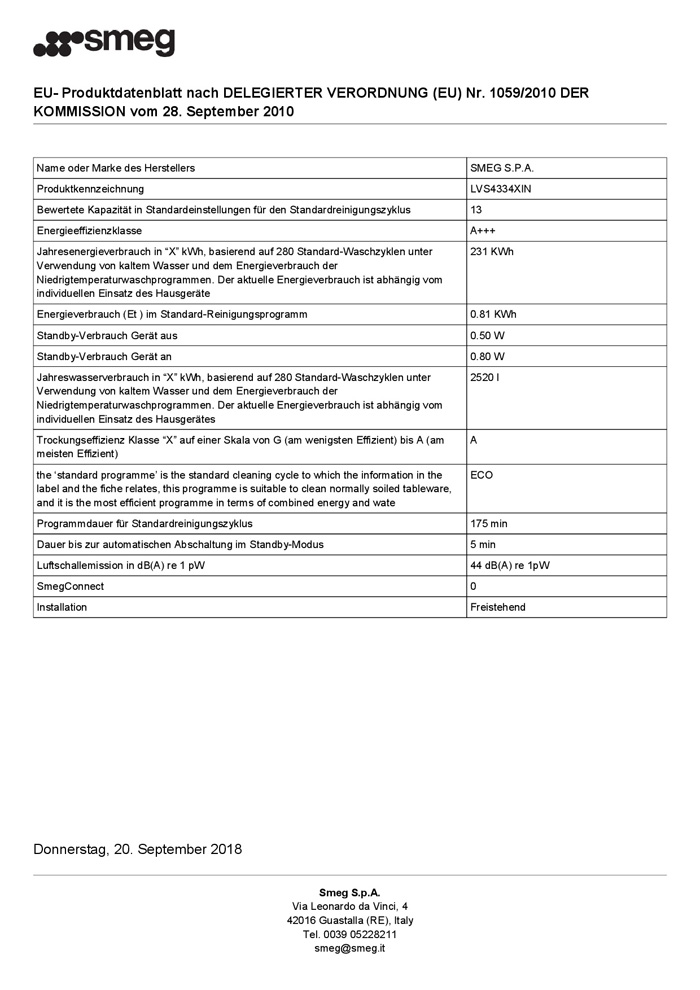 SMEG LVS4334XIN Stand - Geschirrspüler 60 cm, Energieeffizienzklasse A+++ A, mit 5 Jahren Garantie!products_warranty_conditions