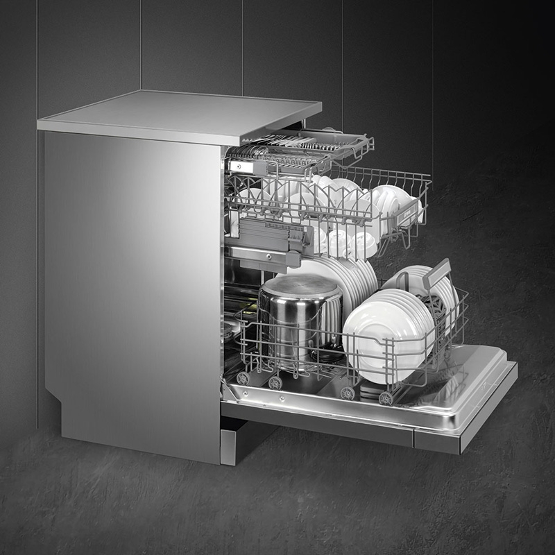 SMEG LVS 43 34XIN Stand-Geschirr-Spüler, Edelstahl, 60 cm, 13 Maßgedecke, 10 Spülprogramme, Edelstahlfront mit Anti-Finger-Protektion, Planet-Spülsystem, Digital-Display, Classici Design