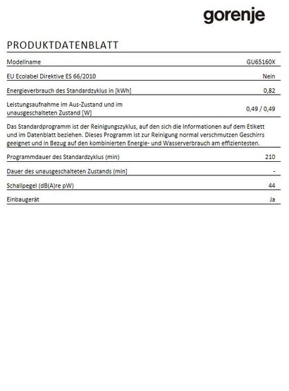 Gorenje GU 65160 X, Geschirrspüler, unterbaubar, EEK: A+++