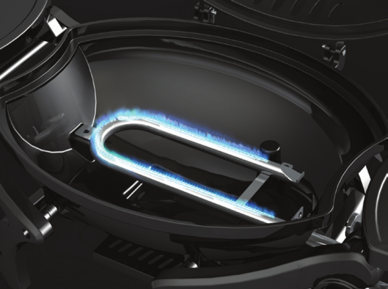 Das Gerät ist mit einem 2-teiligen Grillrost aus Gusseisen, einem 2,94kW Edelstahlbrenner, einem Deckel-Thermometer und einer stabilen Standkonstruktion aus hochwertigem Kunststoffspritzguss ausgestattet.