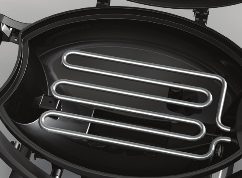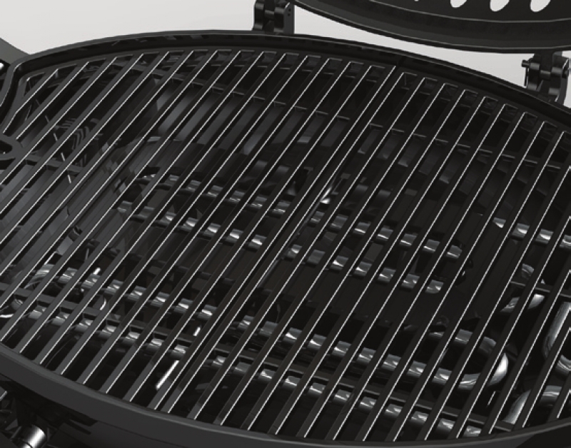 Das Gerät ist mit einem 2-teiligen Grillrost aus Gusseisen, einem 2,2kW Heizelement, einem Deckel-Thermometer und einer stabilen Standkonstruktion aus hochwertigem Kunststoffspritzguss ausgestattet.